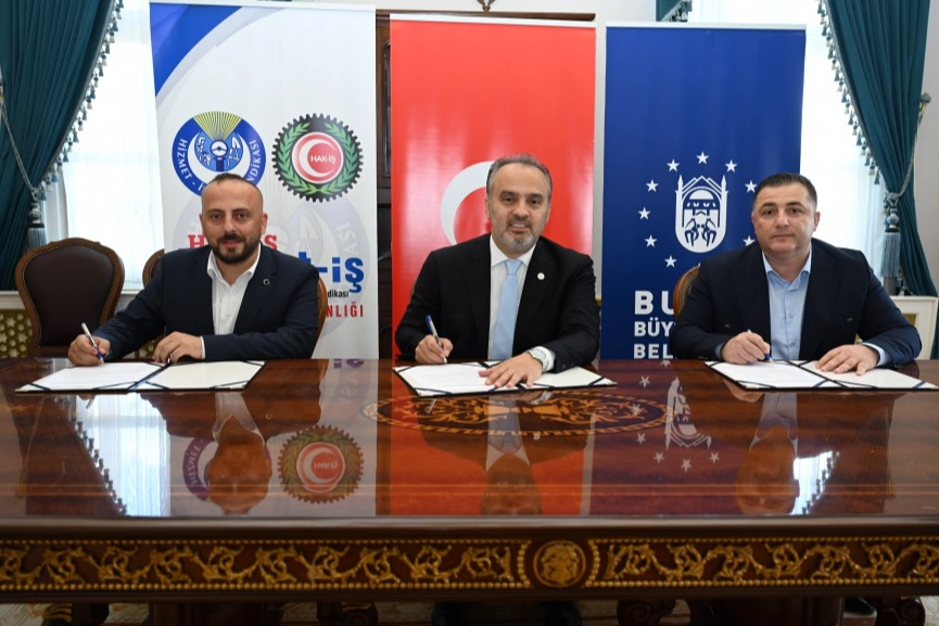 Konuşmaların ardından toplu iş sözleşmesi, Büyükşehir Belediye Başkanı Alinur Aktaş, Hizmet-İş Sendikası Genel Başkan Yardımcısı İdris Ersoy ve sendikanın 2 Nolu Şube Başkanı Enes Şeker arasında imzalandı.