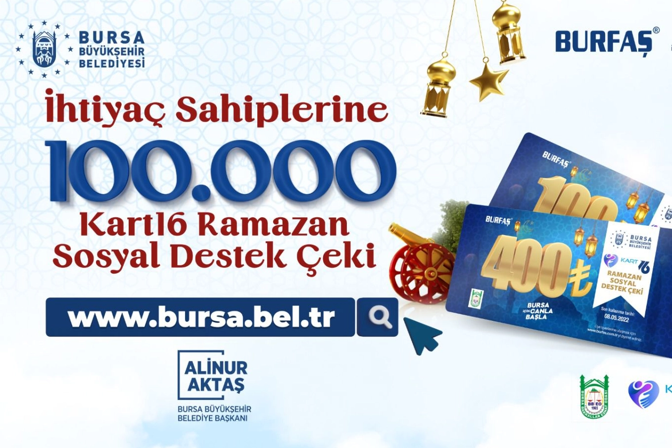 100.000 aileye ulaştırılacak Kart16 Ramazan Sosyal Destek çeki başvuruları www.bursa.bel.tr adresinden yapılıyor.