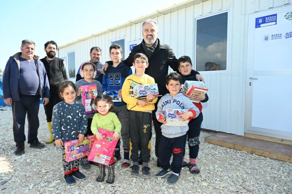 Bursa Büyükşehir Belediye Başkanı Alinur Aktaş, seradan konteyner evlere taşınan vatandaşları ziyaret etti. Günlerdir çoluk çocuk bir seranın içinde hayatta kalma mücadelesi veren vatandaşlarla sohbet eden Başkan Aktaş, oyuncak hediye ederek minikleri mutlu etti, erzak-giyim destekleriyle de ailelerin yaralarını sarmaya çalıştı. Depremin tüm ülkede büyük acılar bıraktığını dile getiren Başkan Aktaş, “Kayıplarımız var, başımız sağ olsun. Yaralılarımıza da acil şifalar diliyorum. Devlet-millet el ele, yaraları sarmaya çalışıyoruz. Artık yaşam başladı, konteynerler kuruluyor. Ailelerimizi çadır ortamından konteynere taşıyoruz. Süreç zor ama elbirliğiyle yaraları saracağız. Yavrularımıza daha güzel bir gelecek hazırlamak adına, anne babaların büyük gayreti var. Onların gayretine Bursa olarak destek vermekten mutluyuz. Rabbim beterinden korusun. Bu güzelliklerde emeği geçenlere teşekkür ediyorum. Allah, kalıcı konutlara en kısa zamanda geçmeyi nasip etsin” dedi.