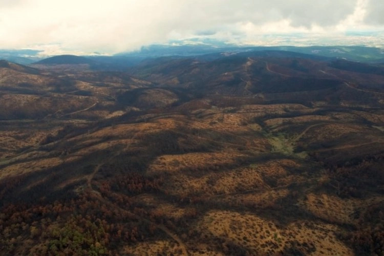 Yangın sonrası bölgenin havadan görüntülendiği çalışmalarda, yanmış ağaçların kontrollü şekilde kesildiği ve sahadan kaldırıldığı kameralara yansıdı. Yetkililer, kesim işlemlerinin tamamen yeniden orman kurma ve güvenli saha oluşturma çalışmaları kapsamında yapıldığını vurguladı.