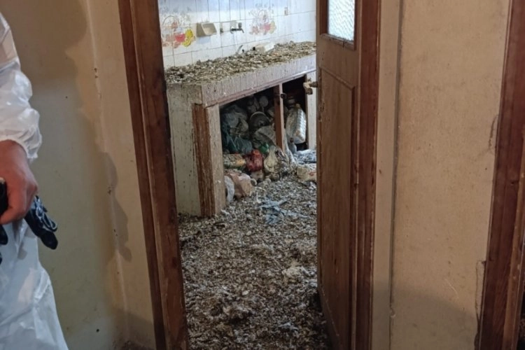 Evin cam ve kapılarının uzun süredir açık olduğu, odaların kuşlarla dolduğu ve dairenin adeta kümese döndüğü görüldü. Temizlik sonrası ekipler evde ilaçlama ve dezenfekte çalışması gerçekleştirdi.