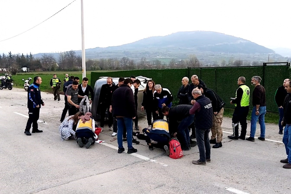 Kaza, İnegöl ilçesi Ahmet Türkel çevreyolu üzerinde meydana geldi. Seyir halindeki Gani E. (46) yönetimindeki 46 LF 201 plakalı otomobil, sürücüsünün kontrolünden çıkarak önce refüje ardından karşı yöne geçerek takla atıp devrildi. Kaza sonucu sürücü ile araçta bulunan Doğan O. (25), Ebru A.(28), Dilek U.(25) ile Selin O. (27) yaralandı. Kaza yerine 112 ve polis ekipleri sevk edildi. 5 yaralı ambulanslarla İnegöl Devlet Hastanesine kaldırıldı. Yaralıların sağlık durumlarının iyi olduğu öğrenildi.