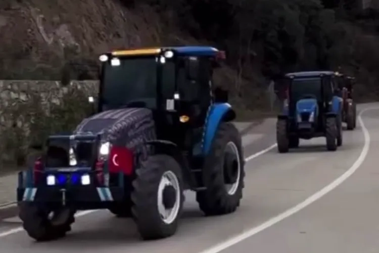 Bursa’nın Mudanya ilçesinde köylüler, Mudanya Belediyesi’nin satışa çıkardığı arazilere tepki göstermek amacıyla traktörlerle eylem yaptı.