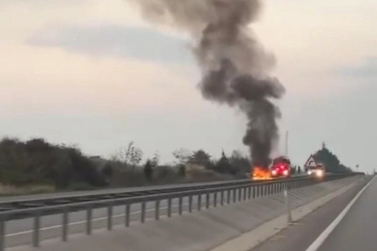 Seyir halindeki bir otomobil sürücüsü aracın motor kısmından çıkan alevler sonrası aracı sağ şeride çekti.