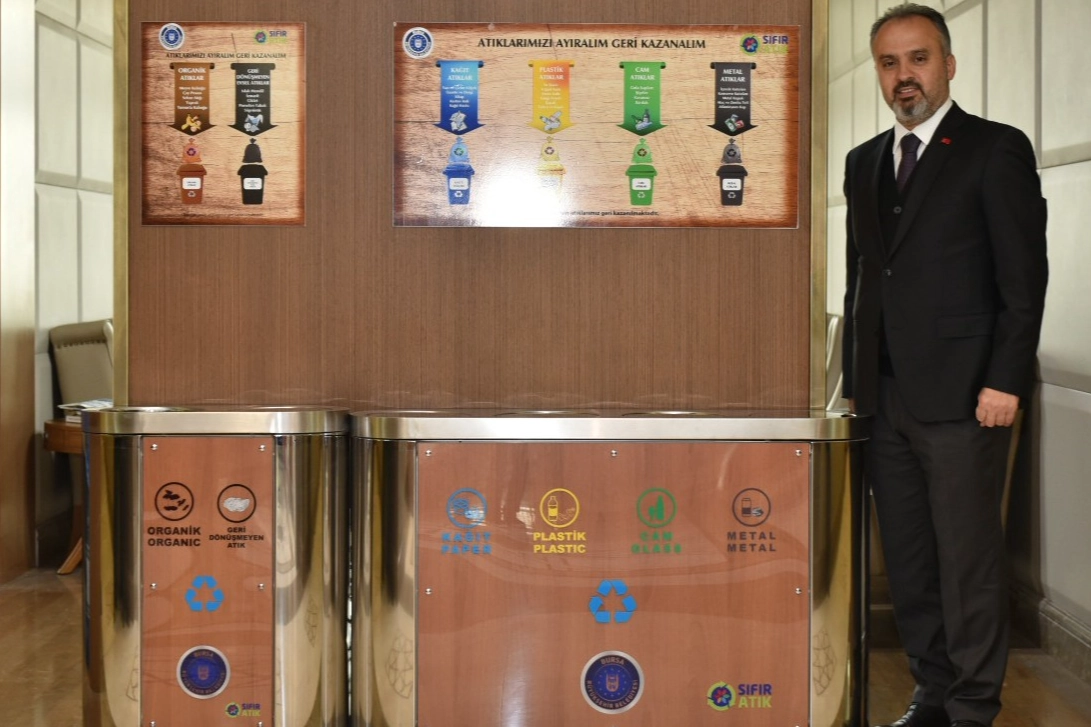 Cumhurbaşkanı Erdoğan’ın eşi Emine Erdoğan’ın himayesinde, ‘Çevre ve Şehircilik Bakanlığı tarafından’ başta kamu kurum ve kuruluşları olmak üzere üniversite, okul, hastane, alışveriş merkezleri ve nüfusun yoğun olduğu yerlerde geri dönüşebilen atıkların kontrol altına alınması için “Sıfır Atık Projesi” başlatılmıştı. İsrafın önlenmesini, kaynakların daha verimli kullanılmasını, oluşan atık miktarının azaltılmasını, etkin toplama sisteminin kurulmasını ve atıkların geri dönüştürülmesini hedefleyen proje doğrultusunda Bursa Büyükşehir Belediyesi de dönüşümde önemli mesafe kat etti. Atıkların kaynağında ayrılmasını sağlamak amacıyla Büyükşehir Belediyesi hizmet binası ve ek hizmet binalarında atıklar için ayrı ayrı toplama kutuları konulurken, tüm personele geri dönüşümün önemi anlatıldı ve sıfır atık projesi hakkında eğitim verildi.