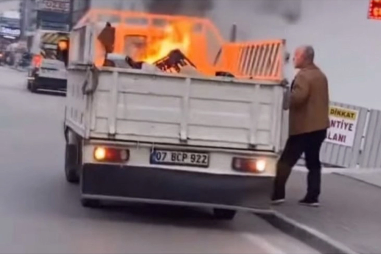 Kısa sürede büyüyen alevler kamyonetin kasasına yayılırken, durumu fark eden sürücü aracını hemen sağa çekti. Yangın tüpüyle müdahale edilen yangın faciaya yol açmadan söndürüldü. Olayla ilgili tahkikat başlatıldı.