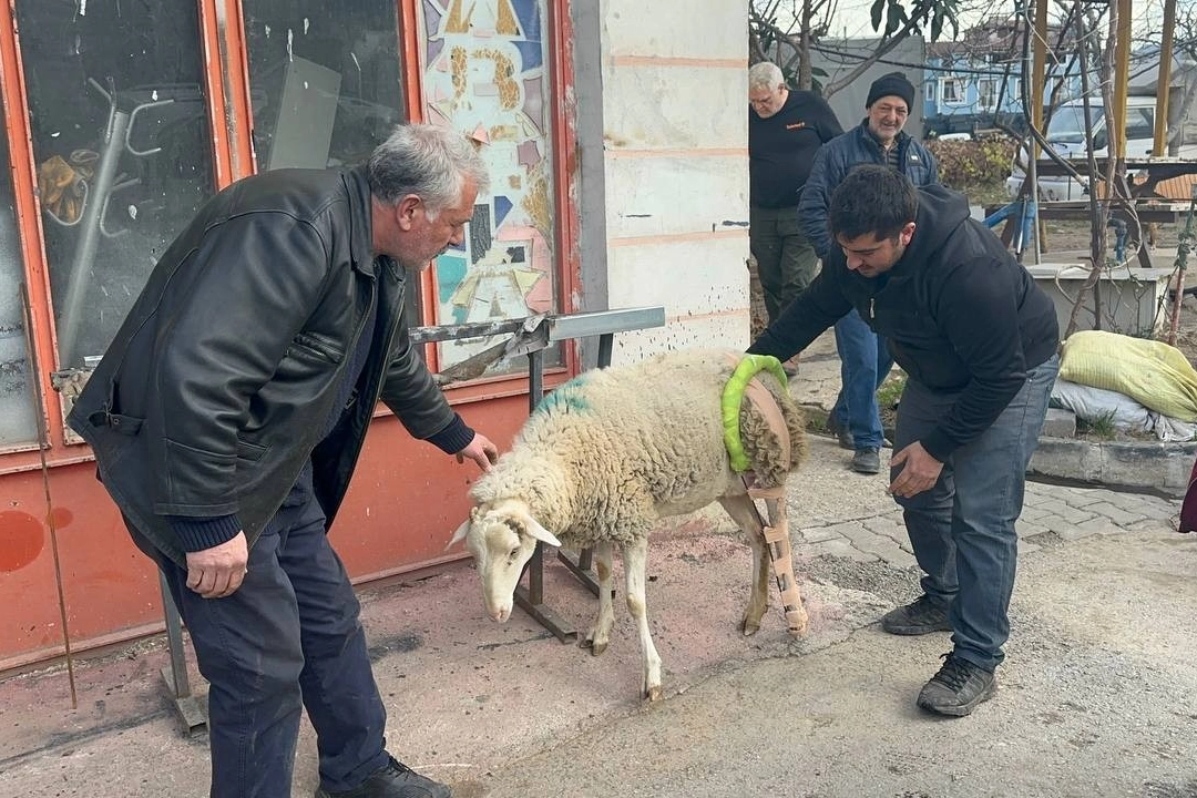 Bursa’nın İznik ilçesinde bacağı kırılan koyun veteriner tarafından sanayide bulunan profilci dükkanına getirildi. Profil ustası; koyun için özel bir aparat tasarladı. Profil Ustası Mesut Acar, “Profilciydim, protezci oldum” dedi.