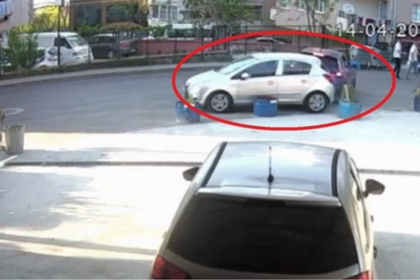 Edinilen bilgiye göre, vitesi R'de unutan sürücü bir anda gaz pedalına yüklenince kontrolünden çıkan otomobil, park halindeki başka bir otomobile çarptı. Kaza sonrası şoka giren sürücü gözlerine inanamadı.