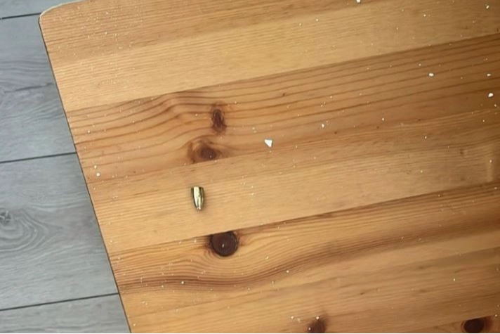 Sabah uyandıklarında evin oturma odasının tavanının delik olduğunu fark eden ev sahibi yerdeki mermi çekirdeğini görünce şaşkına uğradı.