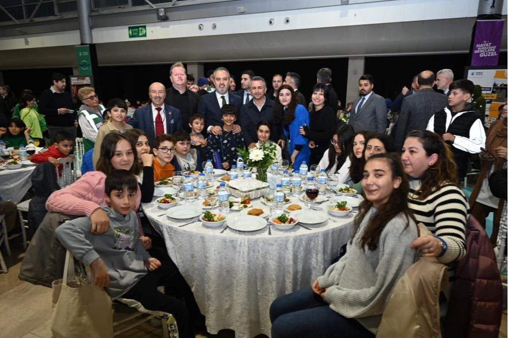Ramazan ayının manevi iklimini Bursalılara yaşatan Büyükşehir Belediyesi, Ramazan ayının 15. günü idrak edilen Dünya Yetimler Günü nedeniyle ‘Çocukların düşü Bursa’nın gülüşü’ temalı iftar programına ev sahipliği yaptı.