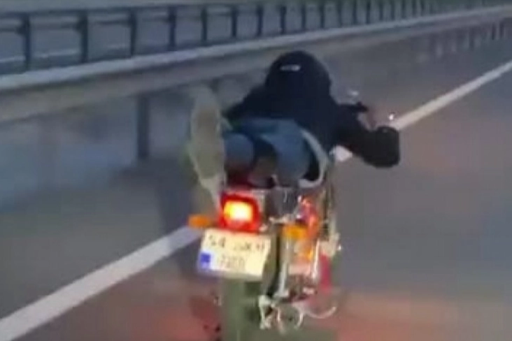 Motosikleti bir süre bu şekilde kullanan ve zaman zaman hızını 125 kilometreye kadar çıkaran şahsı görenler o anları görüntüledi.
