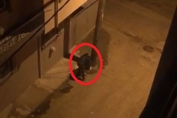 Gürültüye uyanan mahalle sakinleri şüpheliyi cep telefonuyla görüntüledi.