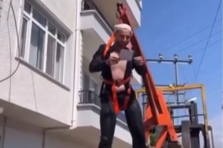 Gelin alma sırasında damat Hasan Bafralı'nın arkadaşları, önce damadı forklifte astı, ardından bahçe hortumu ile yıkayıp su dolu bidona soktular.