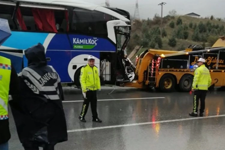 Yol yapım çalışması nedeniyle dubalar ile bölünen yolun sağ şeridinden ilerlediği sırada aniden sol şeride geçen hafriyat kamyonuna, Kamil Koç firmasına ait şehirlerarası yolcu otobüsü çarptı.