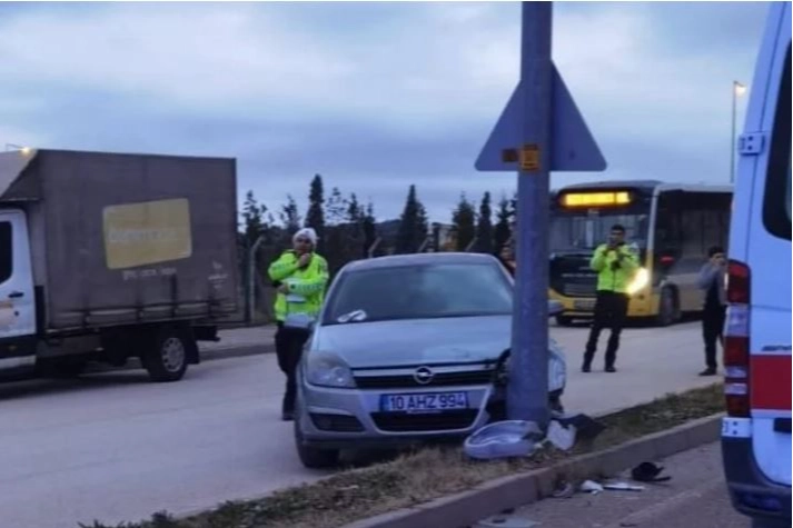 Emran D. (29) idaresindeki 10 AHZ 994 plakalı otomobil sürücüsünün kontrolünden çıkarak yoldan karşıya geçmeye çalışan 2 yayaya ardından aydınlatma direğine çarptı.