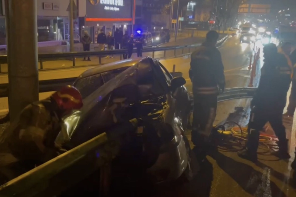 Bursa’da kontrolden çıkan otomobil bariyerlere saplandı. Aracın motor kısmını aşan bariyer, arka kapıdan çıkarken, 5 yaralı var.