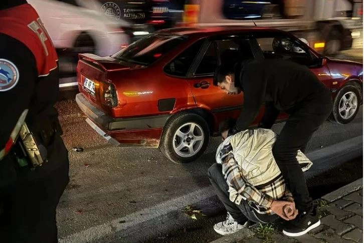 Şüpheli sürücü polis ekiplerinden kaçarken aracın camından dışarıya bir şeyler atmaya çalışırken, kısa sürede yakayı ele verdi.
