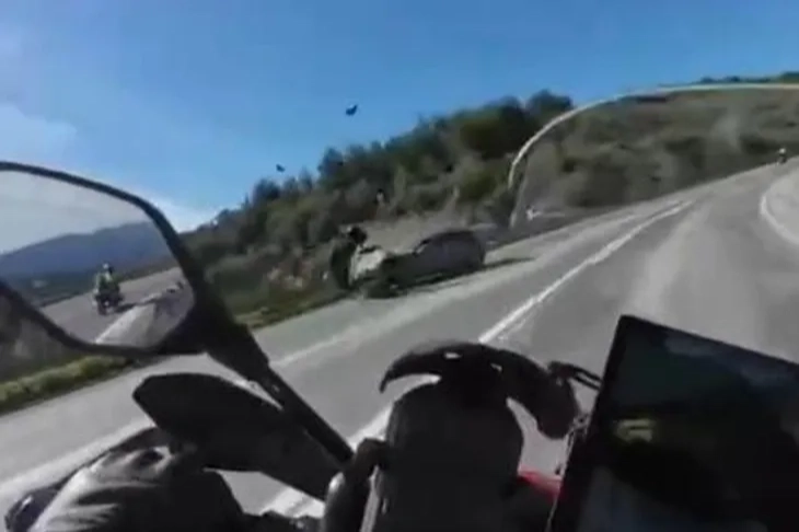 Bursa'nın İznik ilçesi ile Sakarya Pamukova arasındaki karayolunda hatalı sollama yapan motosiklet sürücüsü otomobille çarpıştı. 59 yaşındaki motosiklet sürücüsü hayatını kaybederken, kaza anı başka bir motosikletin kask kamerasına saniye saniye yansıdı.