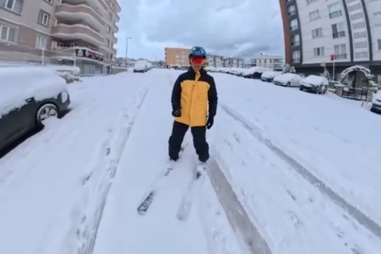 Kayak yaparken kendini kayda da alan vatandaş, karla kaplanan yollarda rahatlıkla ilerlediği anları sosyal medyada paylaştı. Görüntüler kısa sürede ilgi gördü.