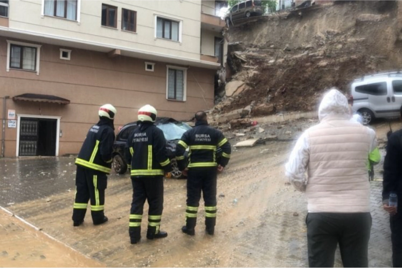 Edinilen bilgiye göre, Gemlik ilçesi Balıkpazarı Yeni Mahalle'de gece saatlerinde başlayan yoğun yağış, bir inşaat firmasının yaptığı istinat duvarını sabah saatlerinde yıktı. Büyük bir gürültü ile çöken duvar 2 apartmana zarar verirken binada yaşayan 2 kişi de yaralandı. Ayrıca sitenin otoparkında bulunan 2 araç da hasar gördü.