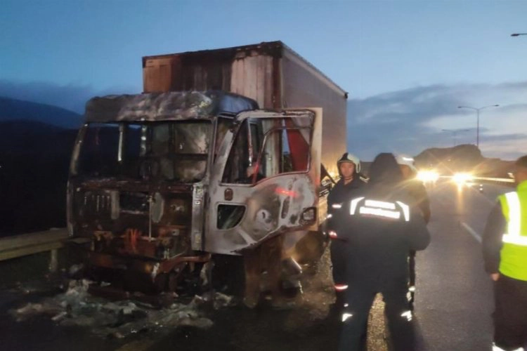 Alınan bilgilere göre İstanbul istikametinden Bursa istikametine doğru gitmekte olan Muhlis Koçu (65) idaresindeki 41 K 6272 tavuk yemi yüklü bir kamyon Gemlik Karsak kavşağını geçtikten sonra motor bölümünden alev aldı.