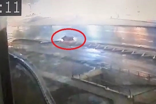 Polis ekipleri yolda güvenlik önlemi alırken, kaza anı bir işyerinin güvenlik kamerasına anbean yansıdı.