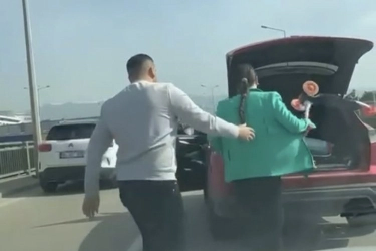 O sırada trafikte bekleyen başka bir kadın sürücü, sürücüye yol vermeyerek korna ile ikaz etti. Duruma sinirlenen sürücü, araçtan inerek hamile olduğu iddia edilen kadın sürücünün aracına zarar verdi.