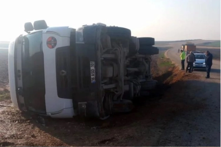 Cadde üzerinde seyir halinde olan sürücü Cahit G.(52) yönetimindeki 16 ASD 101 plakalı çakıl yüklü tır, sürücüsünün kontrolünden çıkarak devrildi.