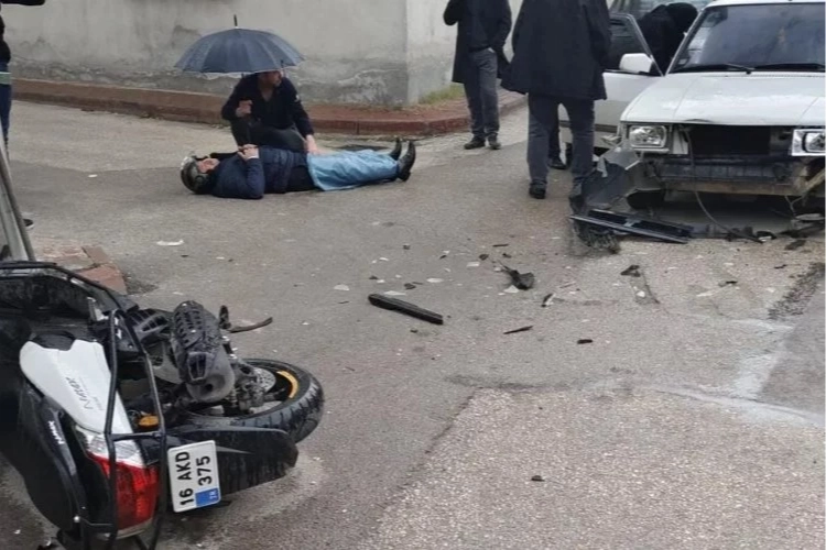 Sürücü İbrahim K.(50) yönetimindeki 16 AKD 375 plakalı motosiklet ile Ferdi Ö. idaresindeki 16 KDA 33 plakalı otomobil çarpıştı.