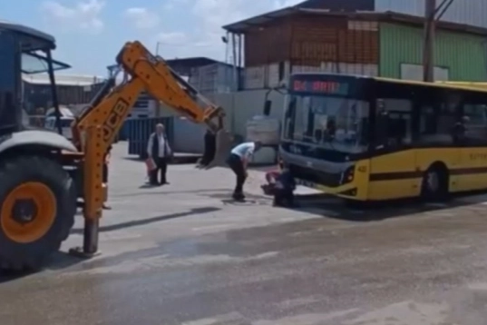 Bursa'nın Nilüfer ilçesi Vakıfköy Mahallesi'nde ilerleyen halk otobüsünün şoförü, alt yapı çalışması için kazı yapılan yerden geçmek istedi.