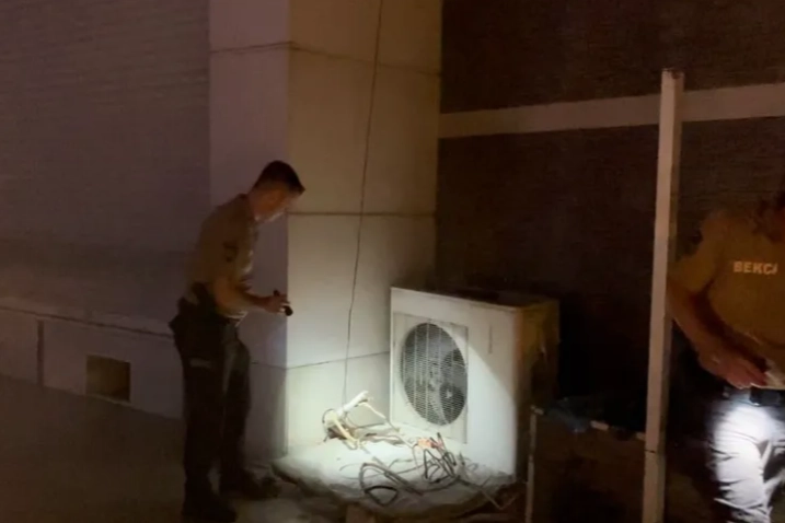 Bursa'nın Yıldırım ilçesi Şükraniye Mahallesi'nde bir işyerine ait klimayı sökmeye çalışan Murat K. ve Mehmet D., bölgede devriye atan gece bekçilerini görünce kaçmak istedi.