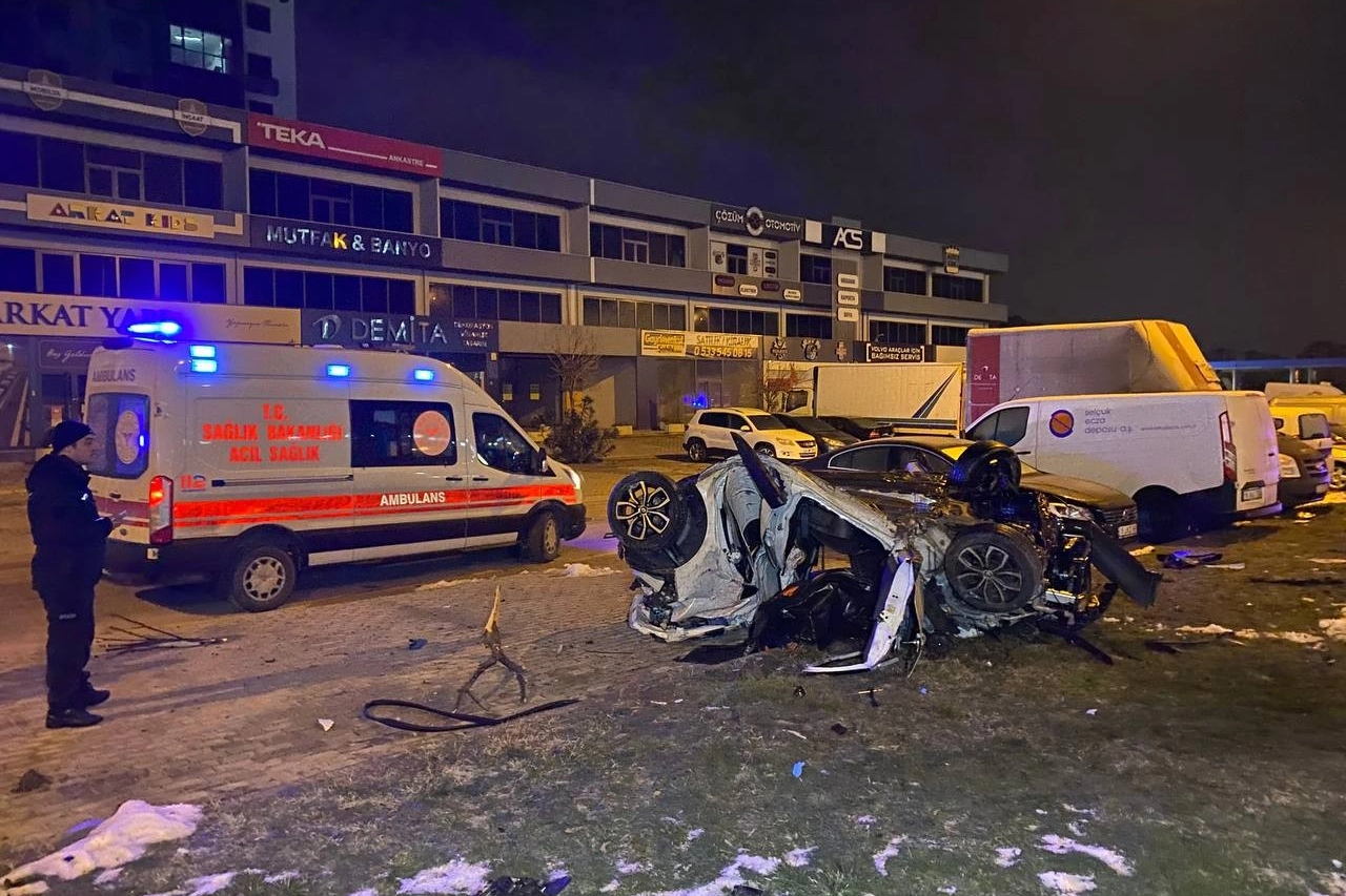 Öte yandan otomobilin kaldırıma çarparak havalandığı ve yol kenarındaki ağaçları devirerek 50 metre boyunca taklalar attığı öğrenildi.