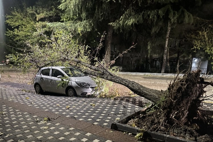 Öte yandan kentin birçok noktasında binaların çatıları uçtu, ağaçlar yola devrildi.