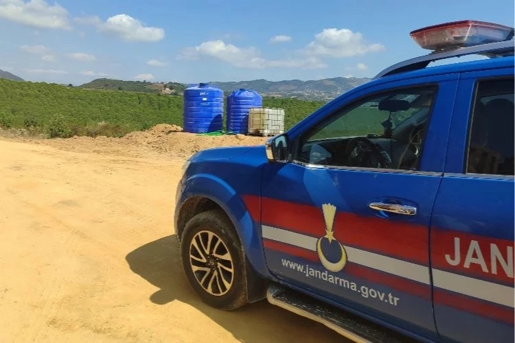 Jandarma ekipleri şantiye alanında bulunan 3 ayrı mazot tankından araziye doğru uzanan hortumları farketti.