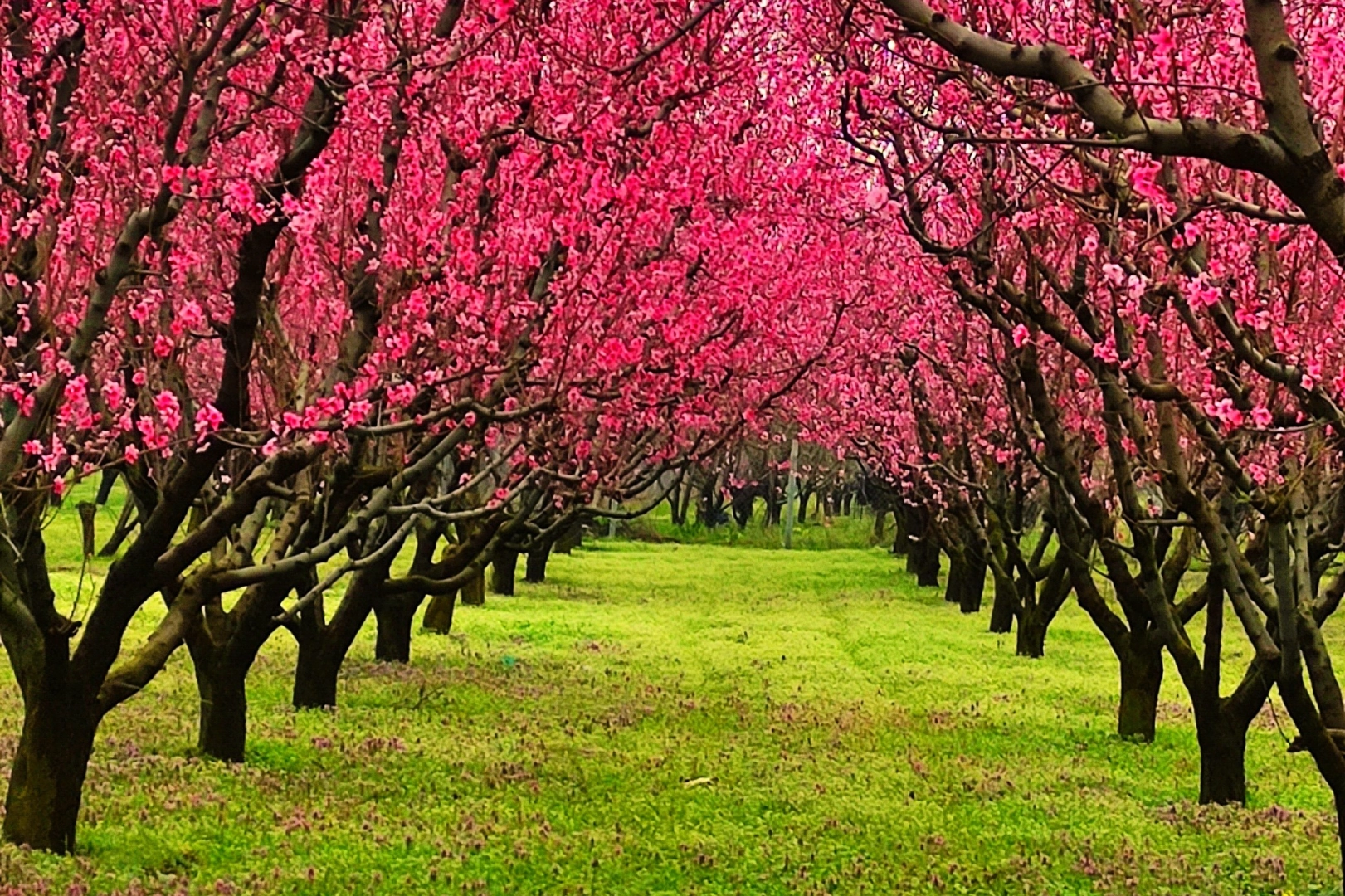 Pembe renkte çiçek açan şeftali ağaçları Bursa ovasını renk cümbüşüne döndürdü.