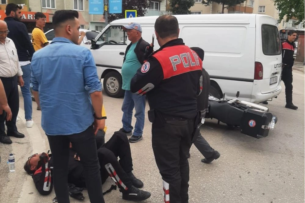 Kaza, saat 16.00 sıralarında Hamidiye Mahallesi Anafartalar Caddesi'nde meydana geldi. Cadde üzerinde devriye atan polis memuru Rıdvan S. (39) yönetimindeki motosiklet, Kurtuluş Sokak'tan aniden yola çıkan sürücü Raif Ü. (60) idaresindeki 16 PR 989 plakalı minibüse yandan çarptı. Çarpmanın etkisiyle devrilen motosikletten düşen polis memuru yaralandı. Kaza sonucu olay yerine çok sayıda polis ile 112 ekibi sevk edildi. Yaralanan polis memuru, ambulansla İnegöl Devlet Hastanesine kaldırıldı. Polisin sağlık durumunun iyi olduğu öğrenildi. Kazayla ilgili soruşturma başlatıldı.