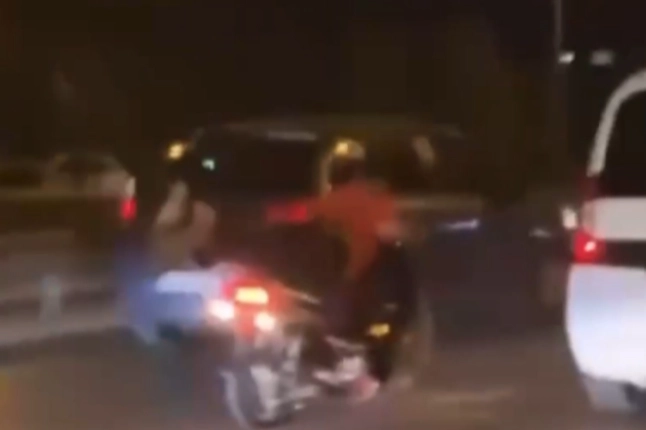 Bir süre böyle giden motosiklet sürücüsü, yürekleri ağza getirdi.