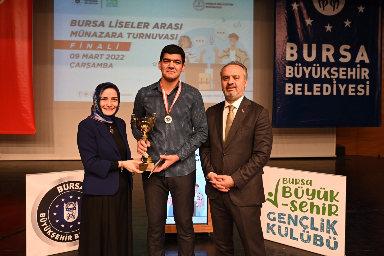 Merinos Atatürk Kongre ve Kültür Merkezi’nde öğrenci ve eğitimcilerin yoğun katılımıyla gerçekleşen final karşılaşmasında, ‘Belediyelerin düzenleyecekleri sosyal, kültürel ve sanatsal faaliyetlere o yörede yaşayan halk karar vermeli’ tezini savunan BTSO Ali Osman Sönmez Sosyal Bilimler Lisesi’nden Alper Akman ve Zekican Oğuz birinci oldu. Turnuvanın finalistleri ile şampiyon takımına kupa, madalya ve hediyelerini Büyükşehir Belediye Başkanı Alinur Aktaş verdi.