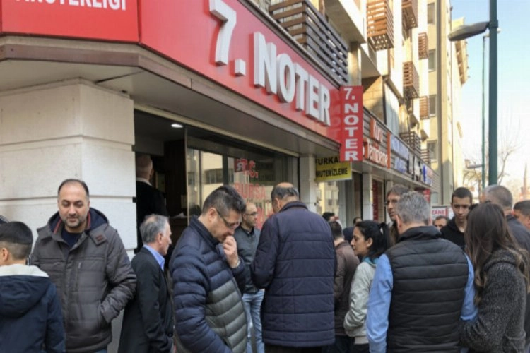 Bursa'da vatandaşlar hafta sonu işlem yaptırmak için nöbetçi noterlere akın etti. Sabahın erken saatlerinden itibaren yüzlerce insanın sıraya girdiği nöbetçi noterlerde uzun kuyruklar oluştu. Hafta içi mesai yaptıkları için notere gidemeyen vatandaşlar, özellikle ikinci el araç alım satımı yapmak için nöbetçi noterlere akın etti. Nöbetçi noter uygulamasının çok yerinde bir karar olduğunu söyleyen vatandaşlar, noter sayısının artırılmasını istedi.