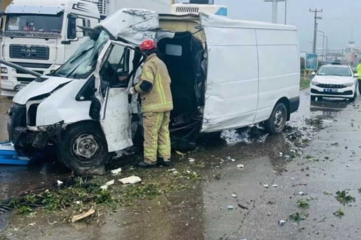 Kaza saat 10.30 sıralarında Bursa-Balıkesir karayolu Tatkavaklı kavşağı yakınlarında meydana geldi. Bursa'dan Balıkesir istikametine seyir halinde olan Mehmet Kesimce idaresindeki 34 BU 7798 plakalı kapalı kasa kamyonet, sürücüsünün direksiyon hakimiyetini kaybetmesiyle yoldan çıktı. Akaryakıt istasyonunun önündeki levha direğine çarparak duran kamyonetin sürücüsü araçta sıkışırken, ihbarla olay yerine sağlık, itfaiye ve polis ekipleri sevk edildi.
