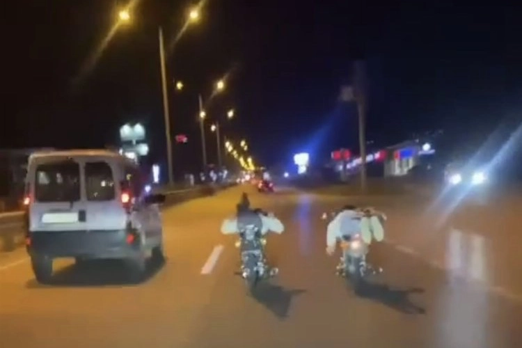 Gençlerin 150 kilometre hıza ulaştıkları ise diğer bir motosiklet sürücüsü tarafından görüntülendi.