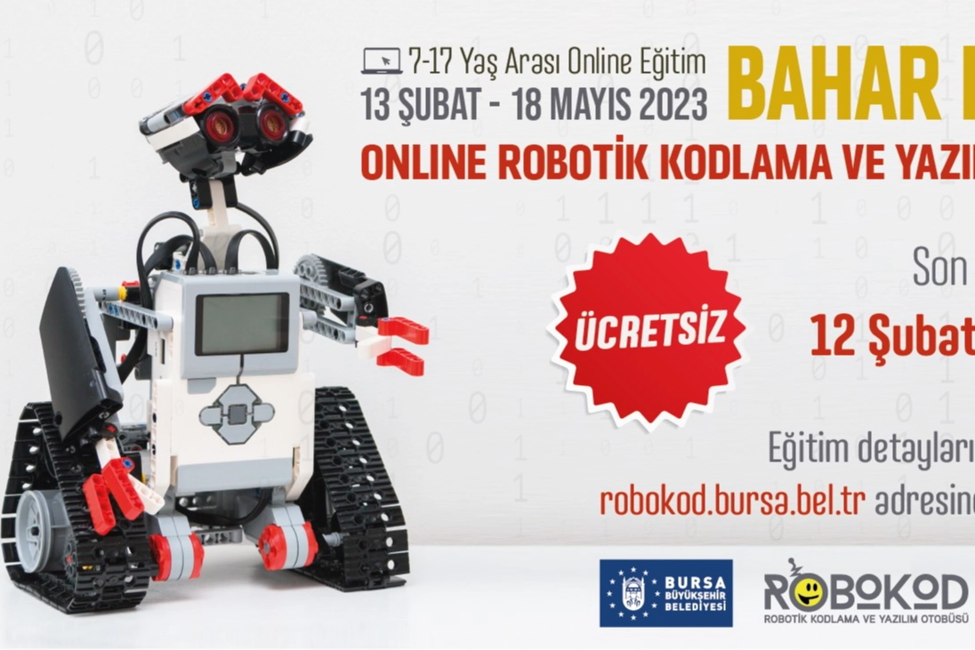 Bursa Büyükşehir Belediyesi’nin çocukların bilim ve teknolojiyi sevmeleri, teknolojiyi sadece tüketen değil aynı zamanda üreten bireyler haline gelmeleri için başlattığı ‘Robokod Kodlama ve Yazılım’ online bahar dönemi eğitimleri 13 Şubat’ta başlıyor.
