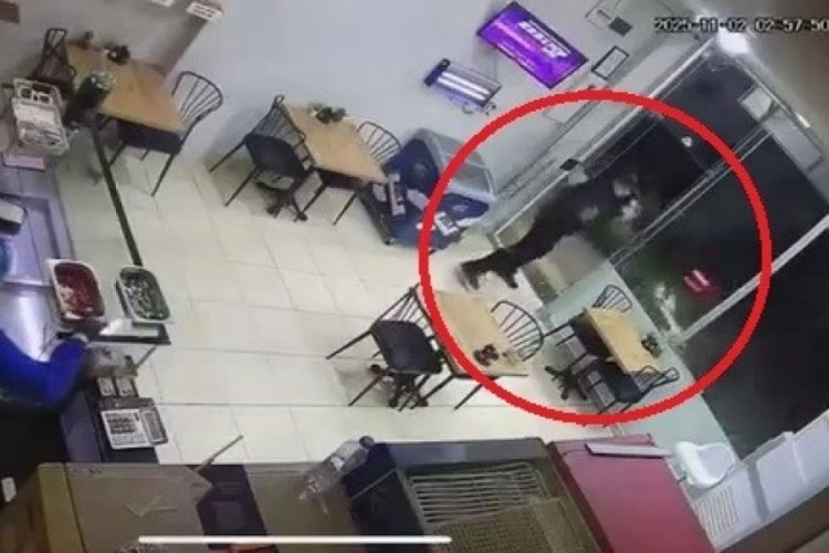 Kazanın etkisiyle işletmede bulunan bir çalışan neye uğradığını şaşırıp içeri kaçtı. O anlar panik yaşanan işyerinin güvenlik kamerasına yansırken, trafik magandası olay yerinden hızla uzaklaştı.