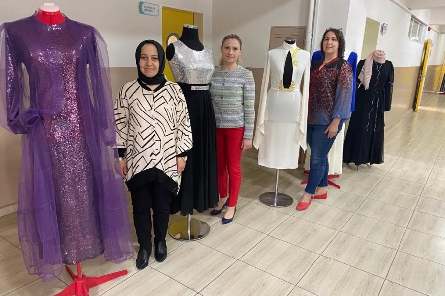 Kursiyerlerin ve davetlilerin katıldığı törende, kursiyerlerin diktikleri ürünlerin de sergisi yapıldı.