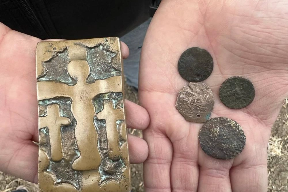 4 medeniyete başşehirlik yapmış Unesco’ya aday Bursa’nın İznik ilçesinde kendine ait şeftali tarlasında budama çalışması yapan Özkan Yılmaz, 4 adet sikke ve üzerinde haç ve çocuk kabartmaları bulunan tablete benzer tarihi bir parça buldu.