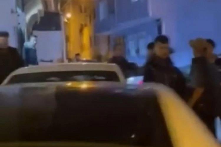Gruplar arasında çıkan sözlü tartışma, kısa sürede kavgaya döndü. Sokağın resmen boks ringine döndüğü kavga, saniye saniye amatör kamera ile kaydedildi.