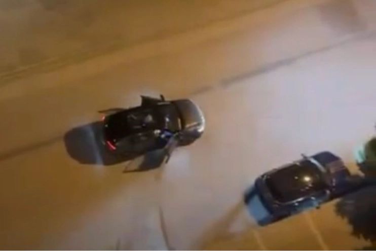 Merkez Nilüfer ilçesi Balat Mahallesi'nde araçla tur atan iki genç otomobilin kapılarını açıp sokak arasında ilerlediler.