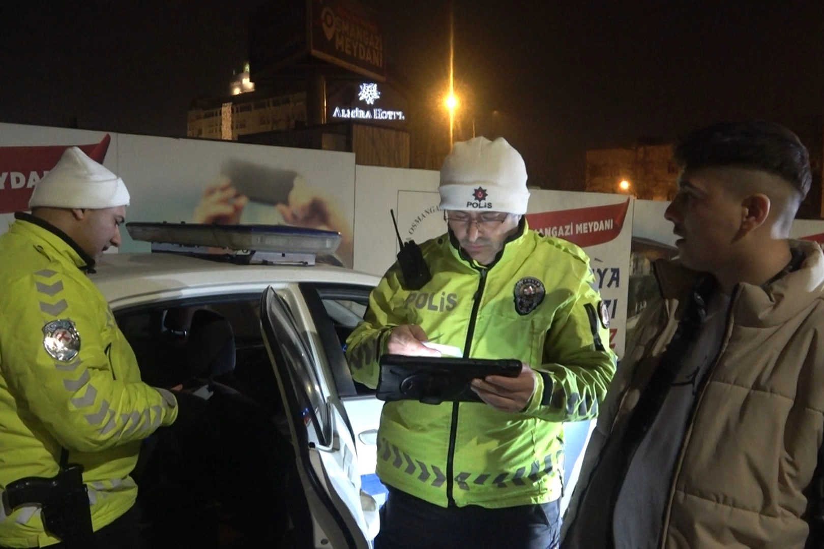Genç, daha büyük ceza yiyeceğini anlayınca üflemek zorunda kaldı. Aracı bağlanan sürücünün arkadaşı ise polis ekiplerini ikna etmek için bir süre uğraştı. Cezadan kaçamayacağını anlayan sürücünün arkadaşı bu kez de arkadaşına dönüp, “Bir iş yapmaya kalkıyoruz, başımıza gelmeyen kalmıyor. Kazalara, belalara gelelim” diyerek beddua yağdırdı. 3 bira içtiğini söyleyen sürücünün arkadaşının ilginç anları dakameralara yansıdı.