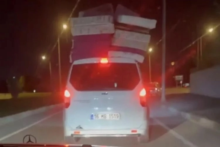 Bursa'nın İnegöl ilçesinde aracının üzerinde yatak taşıyan sürücünün tehlikeli yolculuğu kameraya yansıdı.