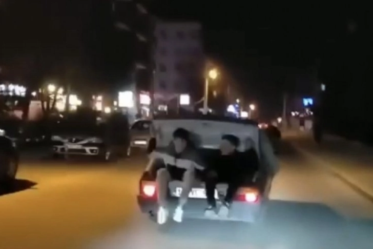 Kendi canlarını tehlikeye atan 2 kafadar, ellerine aldıkları darbuka ile de yaşadıkları anı şenlendirmek istedi. Canlarını hiçe sayan gençlerin tehlikeli yolculuğuna arka koltukta oturan arkadaşları da eşlik etti. Giden aracın kapasını açarak, alkış tutmaya çalıştı.